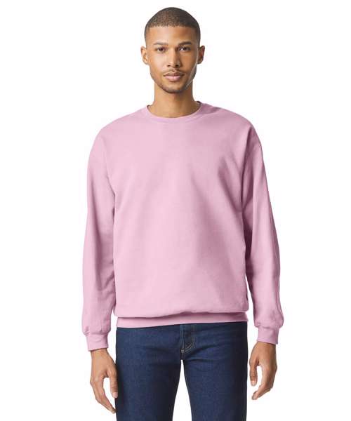 Made with our soft ringspun cotton blend, the Softstyle™ midweight fleece adult crew neck features a cosy, brushed interior with a 100% cotton face, ideal for DTG printing. Two-end ringspun cotton face fleece. Two-piece, colour-matched, Jersey fabric-lined hood. Dropped shoulder. Pouch pocket. 1x1 rib with Spandex cuffs and bottom band for enhanced stretch and recovery. Classic fit, tubular body. High-performing black tear-away label.