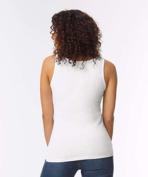 Fitted silhouette with side seam. Tearaway label. Rib knit trim applied to neckline and armholes. Twin-needle bottom hem.