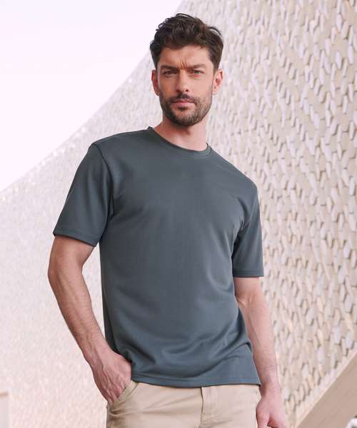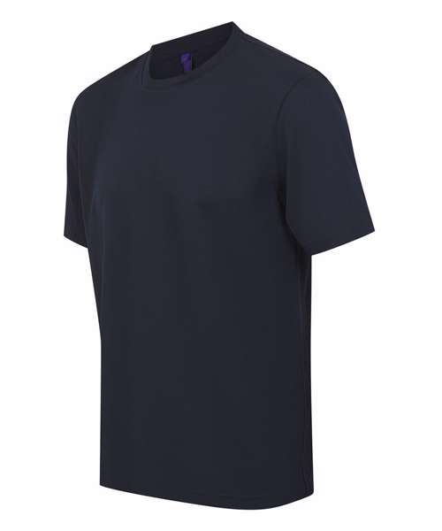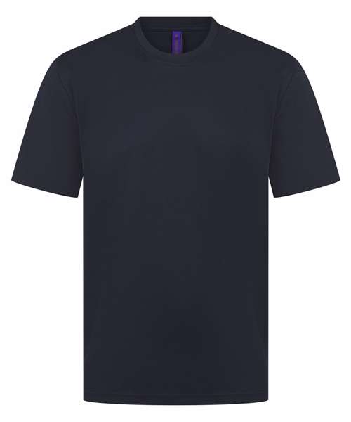 Unisex t-shirt made with best-selling 100% Coolplus® permanent wicking fabric. Easycare properties. Regular fit. Ribbed collar. Twin-needle-stitched cuffs and hem. Side vents. Henbury cut-out label. Part of the Coolplus® collection.