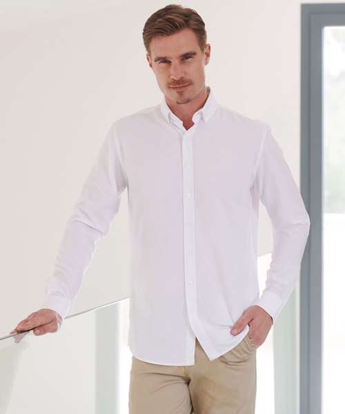 Men’s long sleeve ‘cotton-feel’ Coolplus® shirt, made from 100% Coolplus® permanent wicking fabric with cotton hand feel. Regular fit. Back yoke. Front placket with eight self-coloured pearlised buttons. Button-down collar. Adjustable cuffs. Tag-free. Wrinkle-resistant.