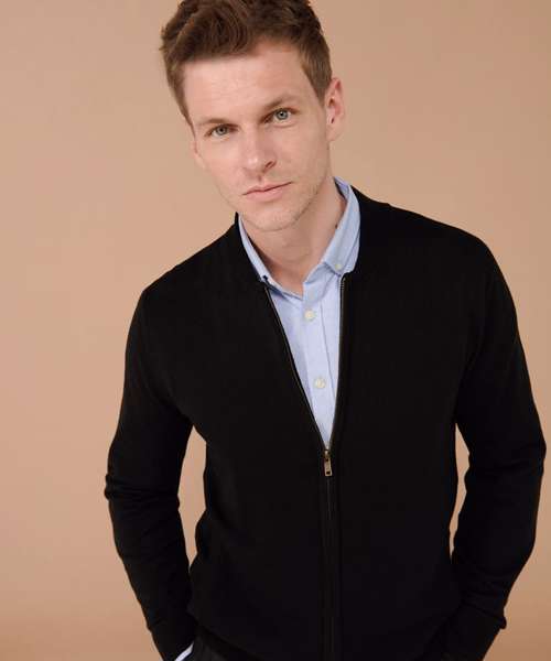 Modern take on a traditional classic. Our knitted bomber jacket allows you to be on trend in a new contemporary design. Fine knit and in quality yarn you can ensure this style will last. Part of our 50 cotton/50 acrylic range where you can mix and match your styles.