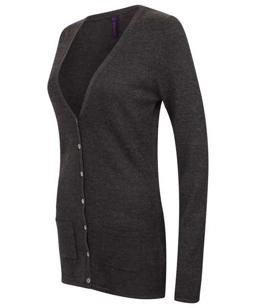 This V-button cardigan offers a modern style long cardigan with pearlized buttons in a quality fine knit made to perform. This style is part of our 50 cotton/50 acrylic range where you can mix and match your styles.