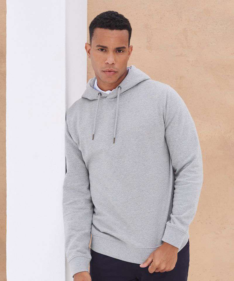 Fabric using recycled materials. Regenerated cotton mixed with recycled polyester. Brush back fleece. Set-in sleeves. 3-piece hood with drawcord and metal ends. Ribbed cuff and hemline. V insert at neckline. Regular fit. Henbury cut-out label for easy rebranding.