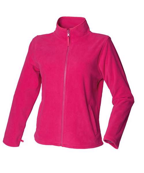 Polyester microfleece with anti-pill finish. Smooth surface for ease of decoration. Front zip pockets. Shaped side seams. Binding at neck edge. Outer hanging loop. Soft stand collar.