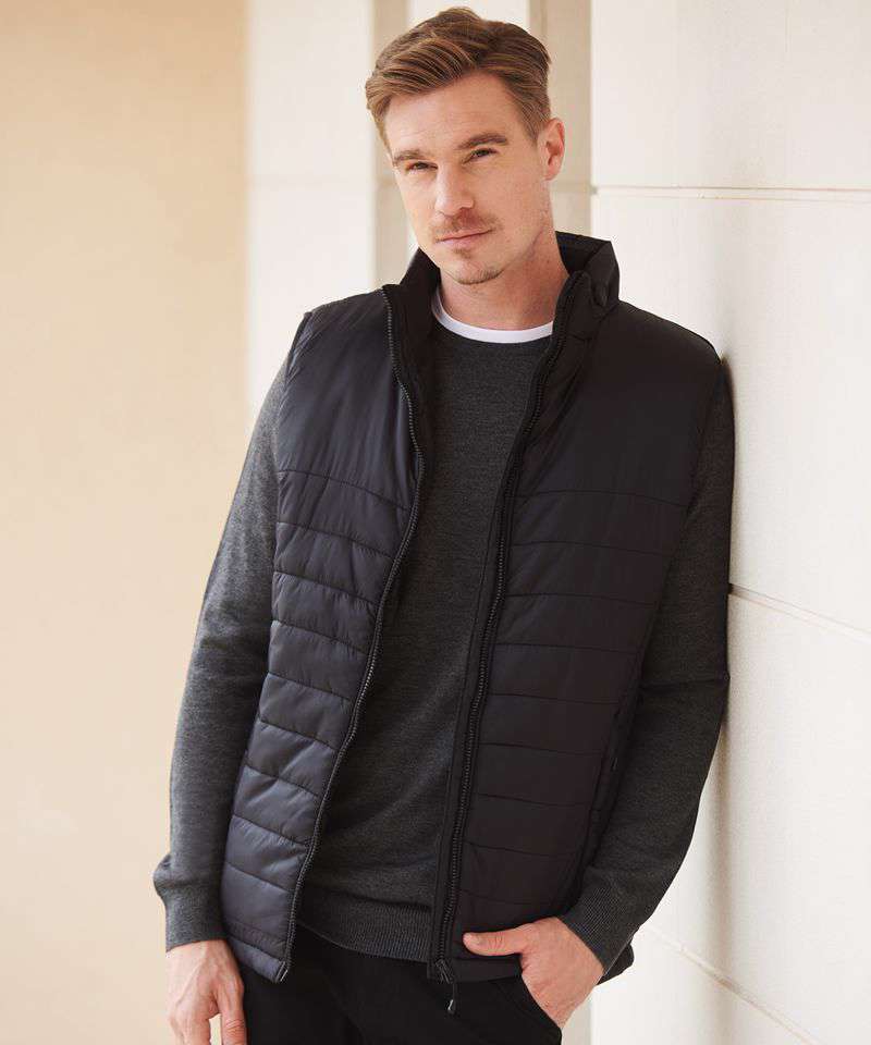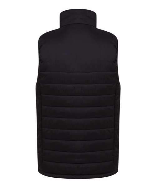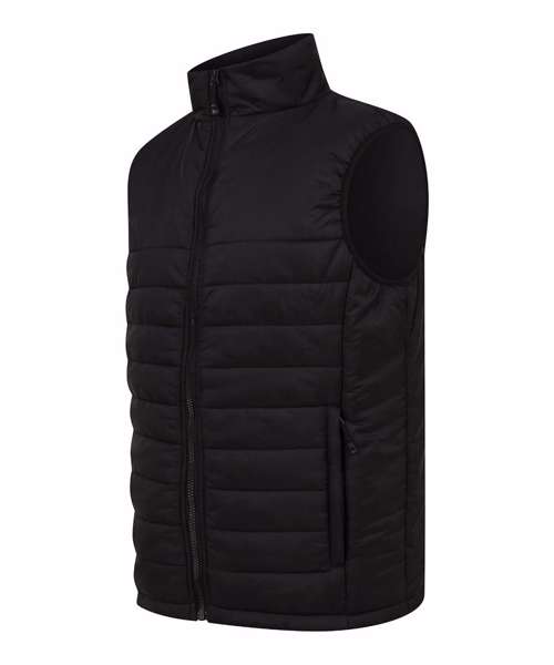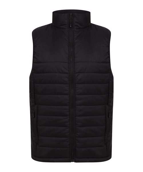 100% nylon pongee in a water-repellent fabric. Quilted polyester padding for puffer effect. Smooth area on chest and across back for decoration. Plain side panels. Full-length front zipper and 2 hidden side pocket with non slip pullers. 2 internal deep pockets. Binding on armhole. Henbury cut out label.