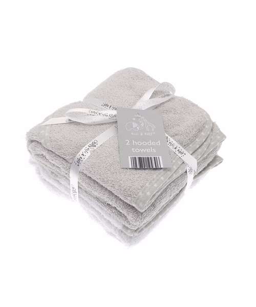 2-pack of 100% cotton hooded towels. The hood is nice and cosy and is great for snuggling up after bath time.