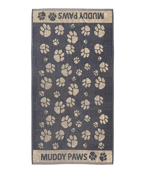 Jacquard muddy paws design dog towel. Machine washable. Jumbo size: 90 x 165cm.