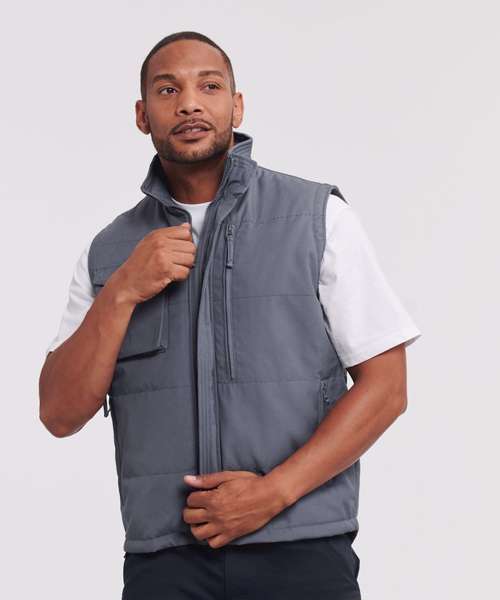 The hardwearing outer material makes this warm, wadded gilet most suitable for heavy duty work environments. Versatile pockets provide storage space for all-important items large and small (including A4 documents - unfolded!).