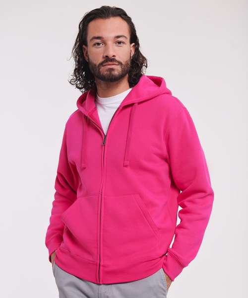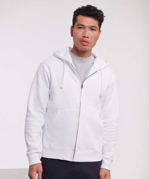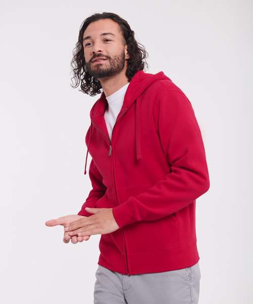 Ultra contemporary zipped hooded sweat in premium 3 layer fabric for a fuller, more substantial and luxurious handfeel. Coverseamed armholes, cuffs and hem. Overseam around hood. Herringbone neck tape. Flat, chunky drawcords. MP3 access. YKK metal (antique silver) full zip. Kissing (covered) zip for full cross body decoration. Buttonhole eyelets. Front facing shoulder seams. Premium finishing. Part of the Russell sweatshirt family that continues to perform wash after wash.