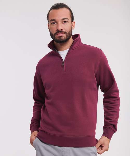 Contemporary fit and modern design. Outer 100% cotton layer provides the best surface for decoration. Herringbone neck tape for comfort and stability. Slimmer shoulders and leaner arms with front facing shoulder seams. Wider hem and cuff constructions. Cover seam armholes, cuffs and hem. Side seams improve fit. Brushed fleece. Kissing (covered) zip for full cross body decoration. Self-fabric cadet collar. YKK metal (Antique Silver) ¼ zip.