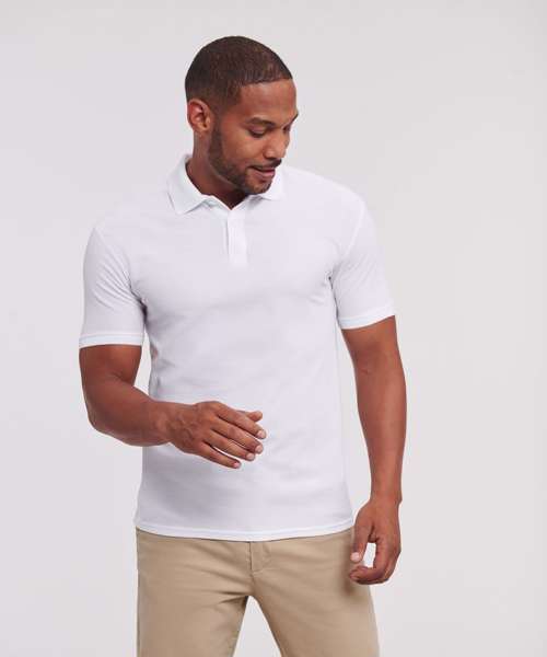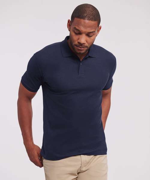 The Authentic eco polo is made from recycled polyester and cotton and is manufactured in Russell Europe’s own production facility. Thanks to more sustainable materials, extremely short European transport routes and full control over production, we have developed a polo shirt with less impact.