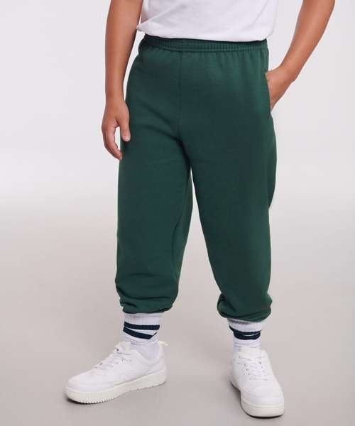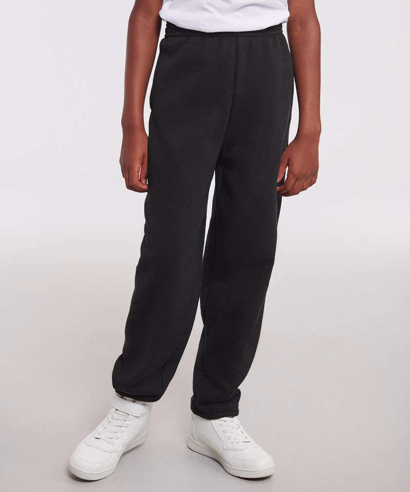 2 side pockets, 4 needle covered elasticated waistband. Elasticated leg ends. No outside leg seam for easy printing.