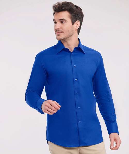 Ultra smart Oxford shirt now has tailored and classic fit options for gents and an elegant tailored fit for ladies, in a high quality Oxford fabric with excellent finish. Contemporary, tailored fit with stiffened semi-cutaway boned collar. Stylish, rounded edge 2 button adjustable cuff, with option for cuff links. Rounded hem.