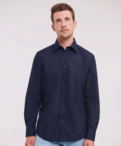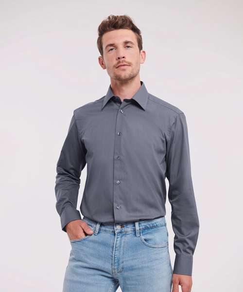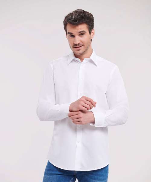 J924M: Long sleeve polycotton easycare fitted poplin shirt