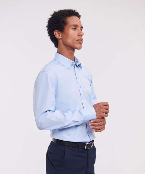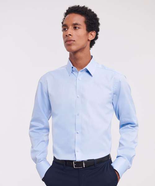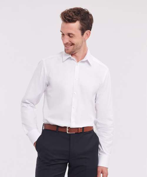 The first herringbone shirt to the imprint market. The ideal combination of style and durability, a contemporary alternative to the Oxford. Classic retail fabric. Easy care. No show through. Tailored fit. Short, semi cutaway collar. Narrow placket. Rounded cuffs. Cuff link option.