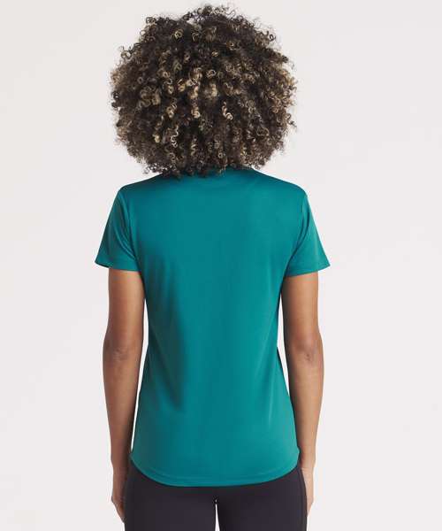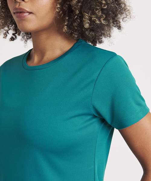AWDis’ own Neoteric™ textured fabric with inherent wickability and quick drying properties. Self-fabric crew neck. Set in sleeve design. Girlie fit. Curved back hem for added comfort. Fabric collar and cuffs. Self-fabric taped back neck. Simple tear off label makes it perfect for rebranding. UPF 30+ UV protection.