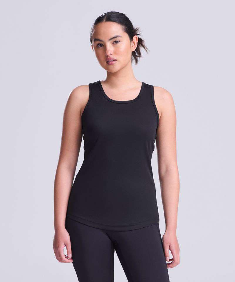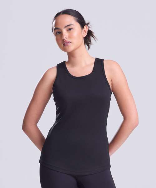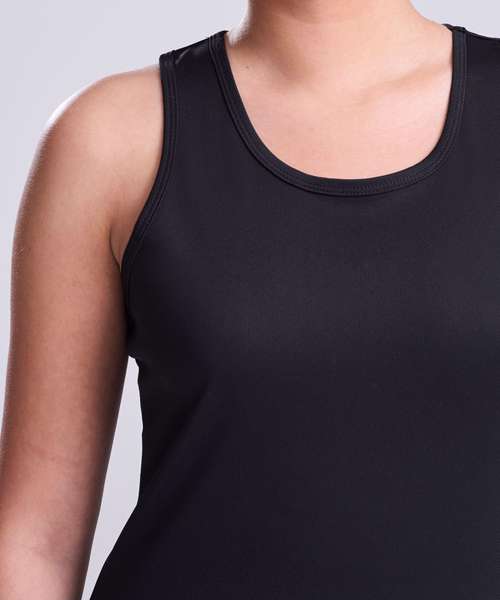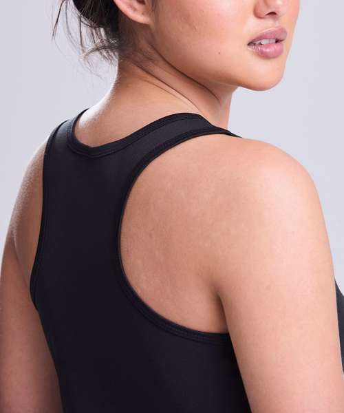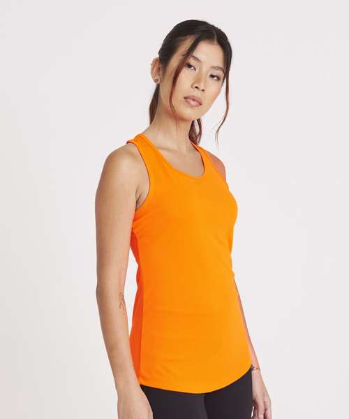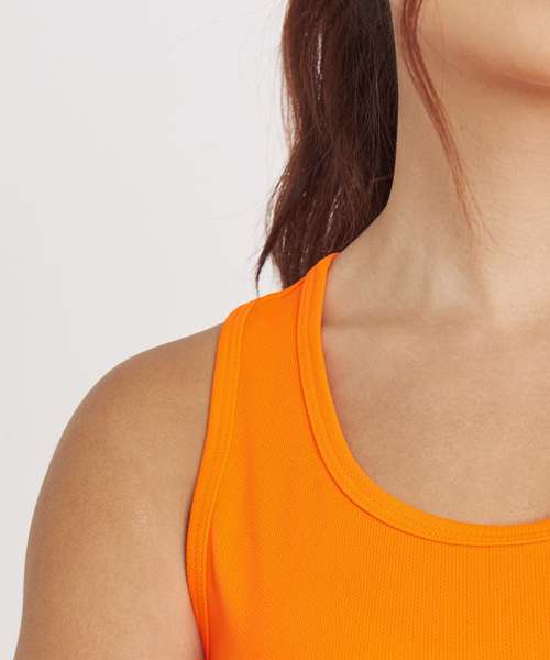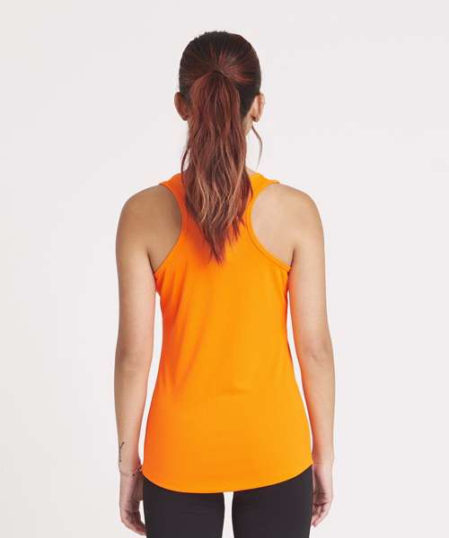 Girlie fit. Racer back style. Curved back hem for added comfort. AWDis’ own Neoteric™ texture fabric with inherent wickability and quick drying properties. Self-fabric binding around neckline and armholes. Simple tear off label makes it perfect for rebranding. UPF 30+ UV protection.