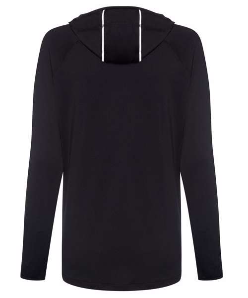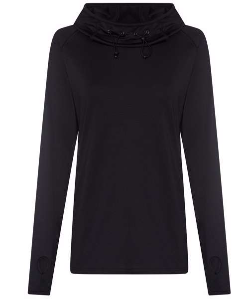 AWDis’ own CoolFit blended fabric containing elastane that provides stretch for comfort and a great fit. Cowl neck style hood. Sporty fit. Ideal for layering. Raglan sleeve design creates ease of movement. Reflective elements on hood for low light conditions. Reflective tab on back of neck helps keep ear phone cords in place. Toggled hood. Flat-lock stitching detail. Thumb hole opening. Simple tear off label makes it perfect for rebranding.
