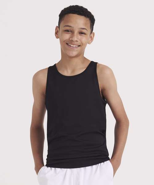 Sporty fit and bold in colour, the Kids cool vest is a gym kit essential. This vest has a sporty fit with a curved back hem for additional comfort and self-fabric binding around the neckline and armholes. Made from a lightweight Neoteric™ fabric to wick sweat away from the skin, it’s the perfect vest for school sports.
