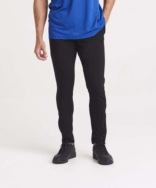 AWDis’ own Urban Cool blended fabric containing elastane that provides stretch for comfort and a great fit, Tapered fit, two side zip pockets, self-fabric back patch pockets, zip fastening at ankles, elasticated waistband with self-coloured outer drawcords, simple tear off label makes it perfect for rebranding, UPF 30+ UV protection.