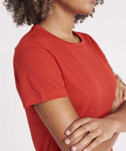 Relaxed sports fit. Set-in sleeve design. AWDis’s own Neoteric recycled fabric with inherent wickability and quick-drying properties. Self-fabric taped back neck. Twin-needle stitching detail. Self-fabric crew neck.