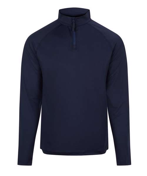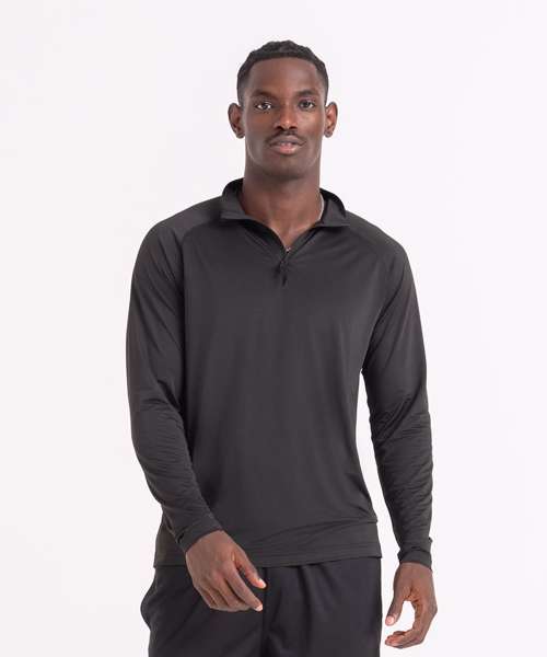 Raglan sleeves. Performance fabric. YKK 1/4-zip. Standard fit. Tear-away label. Quick-dry wicking fabric. Contains recycled polyester.