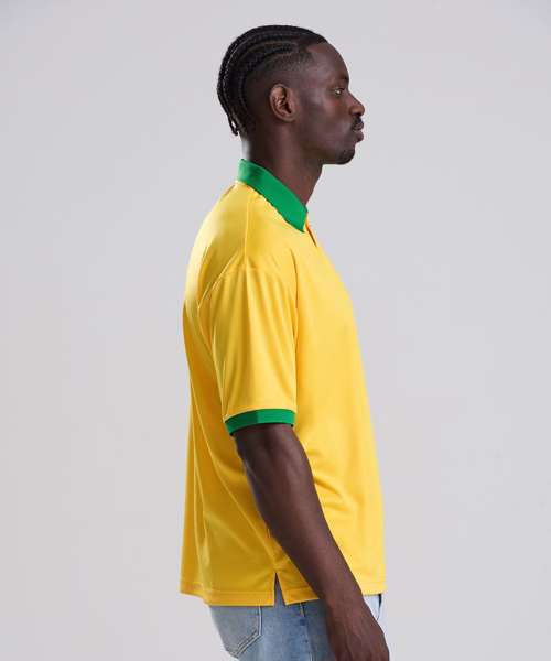 Bring back the classics with the Retro sports jersey. Designed with a relaxed fit and set-in sleeves, it features a contrast knitted collar and wicking fabric to keep you cool and comfortable. White/Navy and Red/White options include a retro-patterned print for an authentic touch, while a tear-away label allows for easy rebranding. Made with 100% recycled polyester.