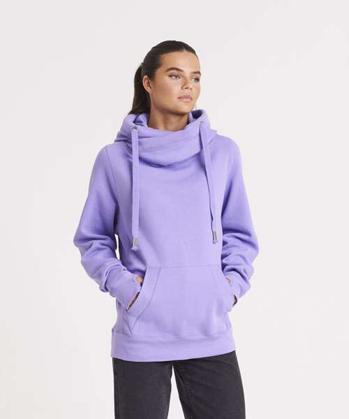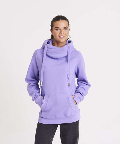 Made with cotton faced fabric which is ideal for decoration, this modern and stylish high necked cross over hooded top features heavy weight fabric to keep you warm on the move.