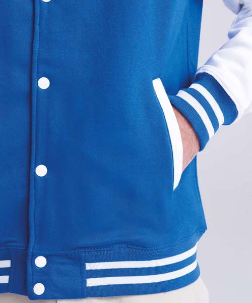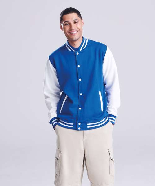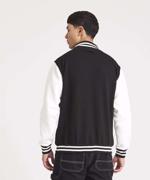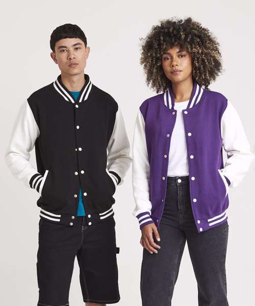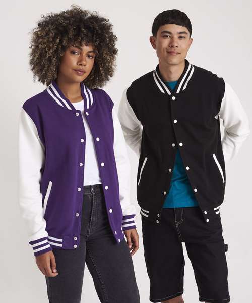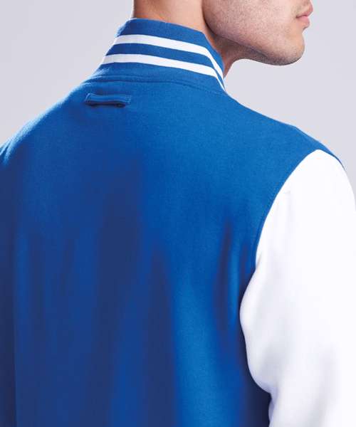 Get the varsity look with this classic American inspired jacket. Contrast sleeves and poppers complete this look which is fashioned from our heavyweight fabric which is ideal for decoration.