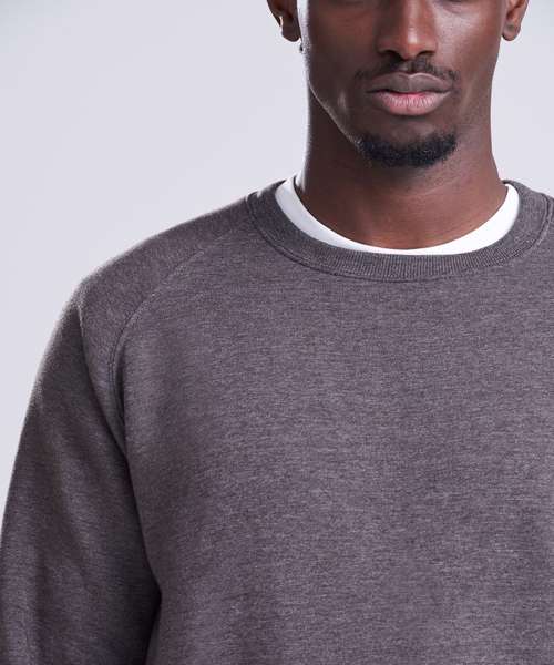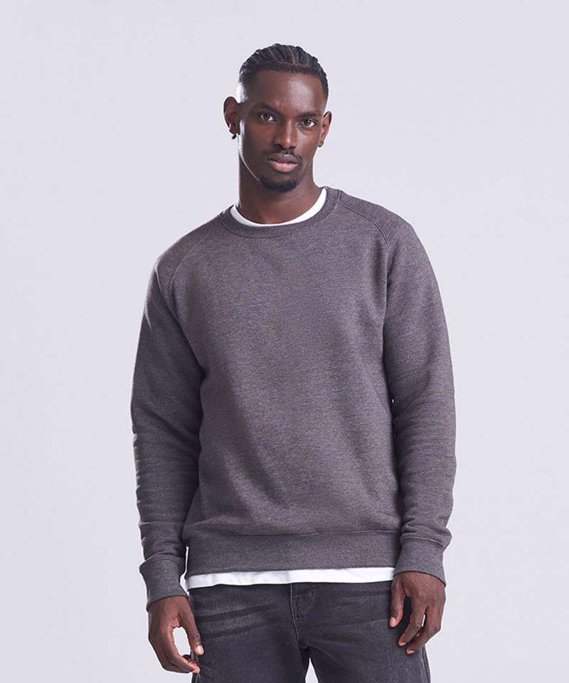 Heavyweight sweat. Twin-needle stitching detail. Raglan sleeves. 2 x 1 ribbed cuffs and hem. Soft cotton faced fabric creates ideal printing surface. Simple tear-out label makes it perfect for rebranding. Brushed inner fleece.