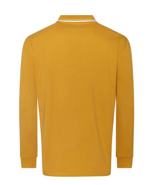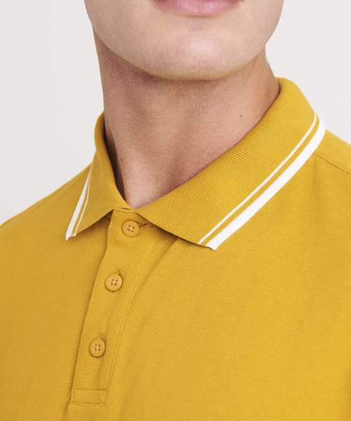 Modern and stylish fit. Contrasting tipping on collar. Three- button placket with dyed-to-match buttons and spare button. Size label only, for easy rebranding– colour coded black for unisex. Cuffed sleeves. 1x1 ribbed flat collar. Excellent surface for print or embroidery. Taped neck. Long sleeves. Twin-needle stitching detail on armhole and bottom hem.