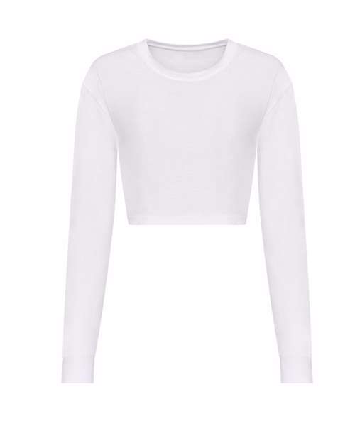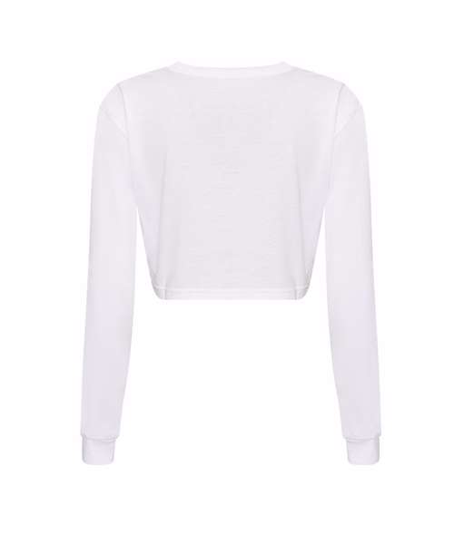 Cropped women’s fit with side seams. Long sleeves with cuffs. Size label only, for easy rebranding – colour-coded white for women. Triblend fabric for style and comfort. Surface excellent for print or embroidery. Ribbed crew neck style, with taped neck. Twin-needle stitching detail on sleeve and bottom hem.