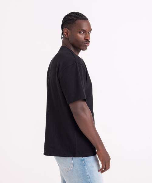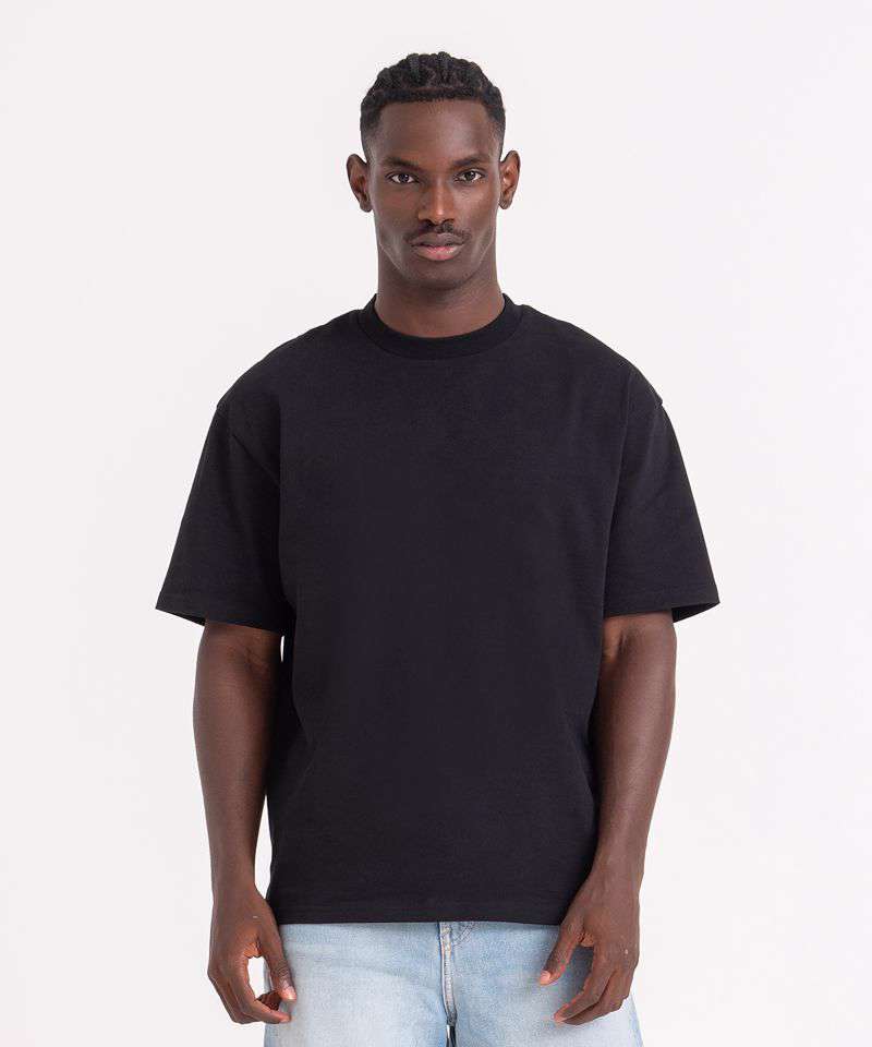 Oversized fit. Side seams. Ribbed crew neck. Set-in sleeve. Boxy shape. Taped back-neck. Excellent surface for print or embroidery.