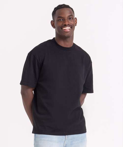 The Signature heavyweight T is a premium t-shirt with an ultra-heavy 300gsm cotton fabric. In a classic, oversized, boxy shape, and with details including a high ribbed neck, it’s a perfect match for merchandise, retail or premium requests.