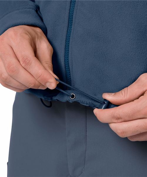 Lightweight jacket in recycled microfleece with short system zip. NANUK 100 ECOSPHERE: lightweight, recycled fleece with very good warmth-to-weight performance, 2 hand pockets, adjustable hem, short system zip for zip-in combination with an outer jacket. Fairwear Foundation certified.