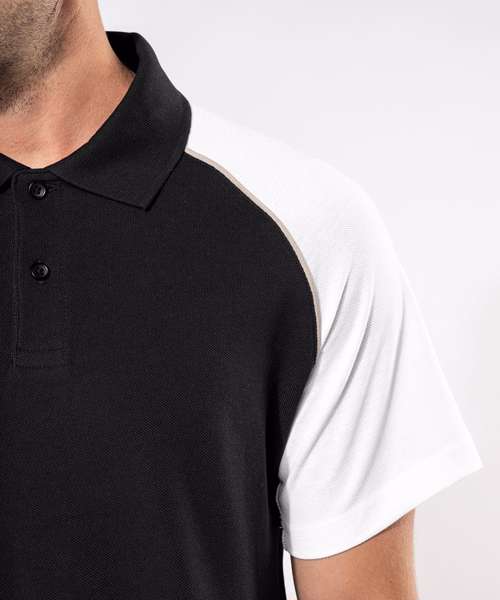 100% Cotton Piqué. Ribbed collar with taped neck. Contrast raglan sleeves with Light grey contrast piping at armholes. 2 matching button placket. Twin-needle finishing. BSCI certified. Oeko-Tex certified. SEDEX certified. WRAP certified.
