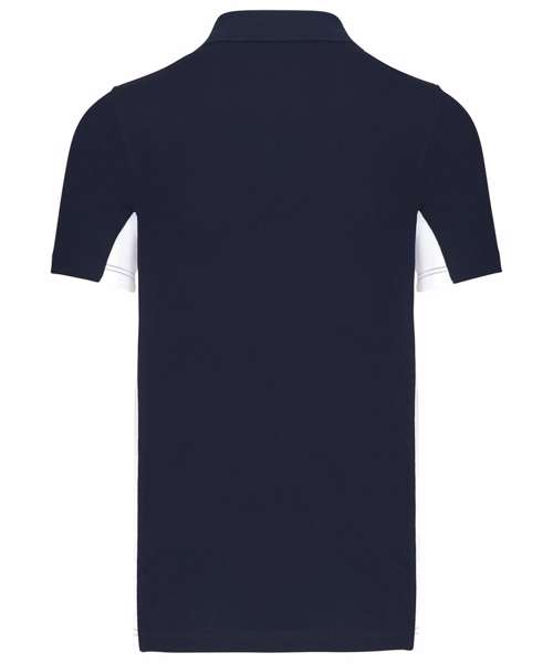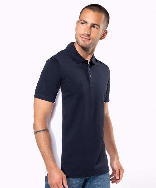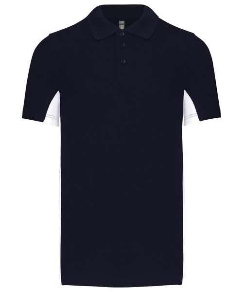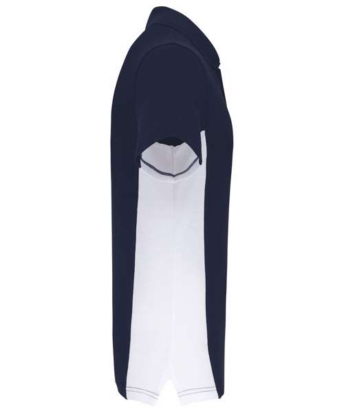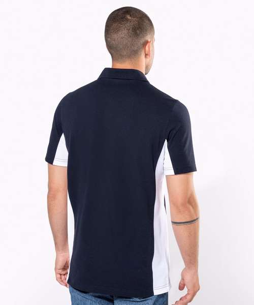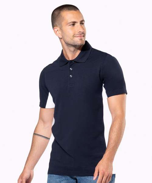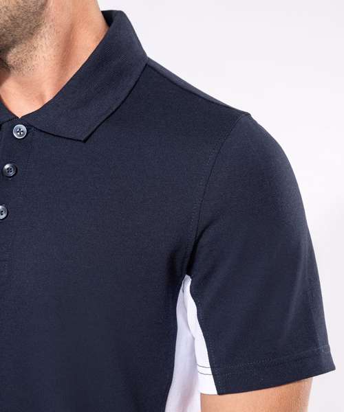 65% polyester/35% cotton. Piqué knit. Ribbed collar. 3-button matching placket. Contrast panels down arm and sides. Self-fabric cuffs. Certified STANDARD 100 by OEKO-TEX® N° CQ 1007/7, IFTH.