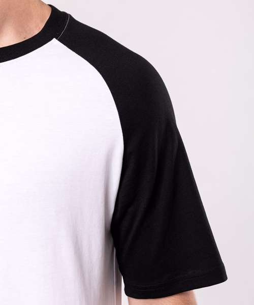100% Cotton. Contrast raglan sleeves and neck rib. Neck rib contains elastane. Side vents. Twin needle finishing. BSCI certified. Oeko-Tex certified.