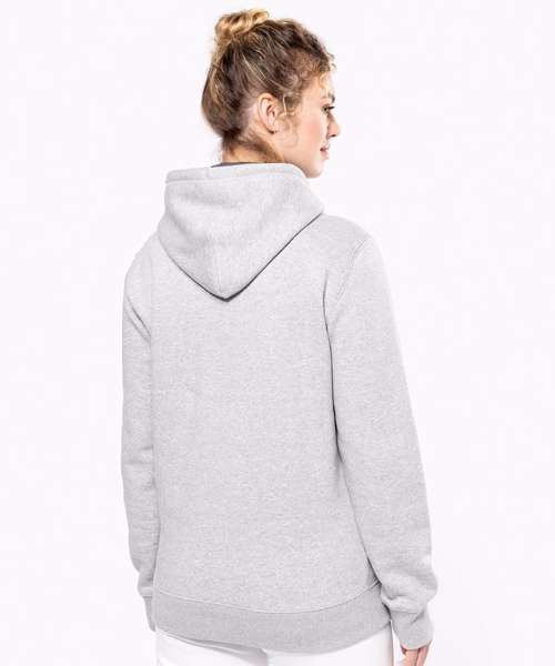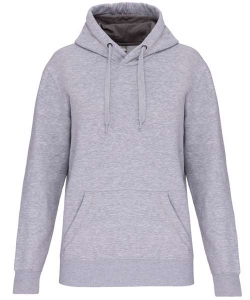 80% combed cotton/20% LSF polyester. Low shrinkage brushed fleece. Silicone wash. Contrast neck tape. Heather Grey inner hood for all colours, except for Oxford Grey body where inner hood is Dark Grey. Kangaroo pocket. Ribbed cuffs and waistband. Certified STANDARD 100 by OEKO-TEX® N° CQ 1007/8, IFTH.