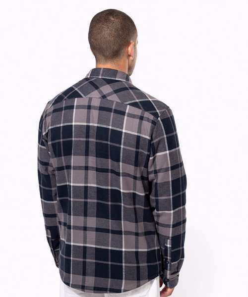 100% cotton flannel. Sherpa-lined body in 100% polyester. Lined and padded sleeves in 100% polyester taffeta. Very soft and warm shirt jacket. 2 flap chest pockets. Classic button placket. Adjustable buttoned cuffs. Rounded hem. No brand label at neck, only size tag for easy relabelling. Certified STANDARD 100 by OEKO-TEX® N° CQ 1007/8, IFTH.