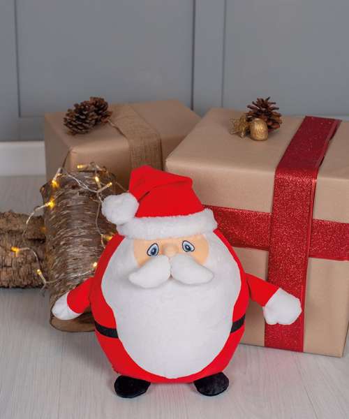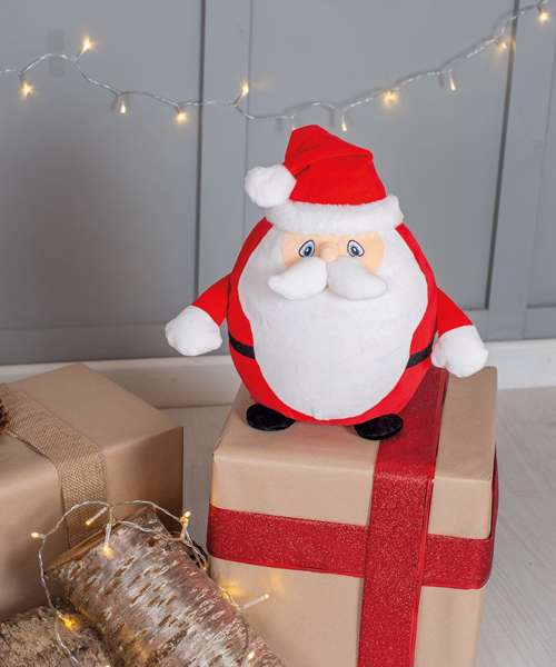 Suitable for direct decoration onto the front panel. Zip access at the bottom of Father Christmas for direct decoration. Removable inner pad. Can be embroidered, vinyl, and sublimation printed. Complies with EN71 European Toy Safety Regulations. Suitable for all ages.