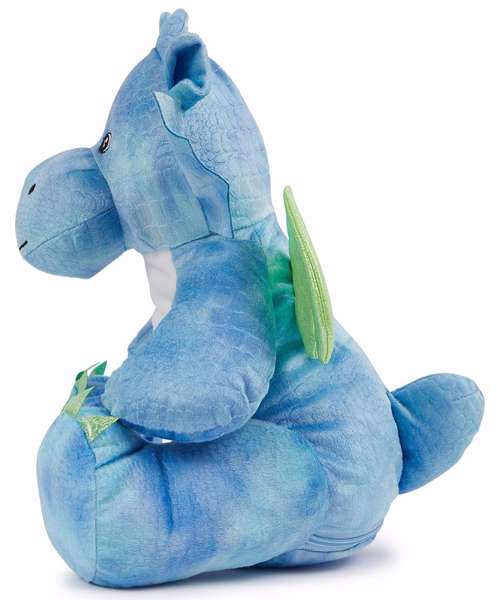The mythical Zippie dragon is making an entrance in blue scaled fur with green wings, ready to take off. Perfect for decorating, the tummy is made in a flatter pile for easy embroidery or print.
