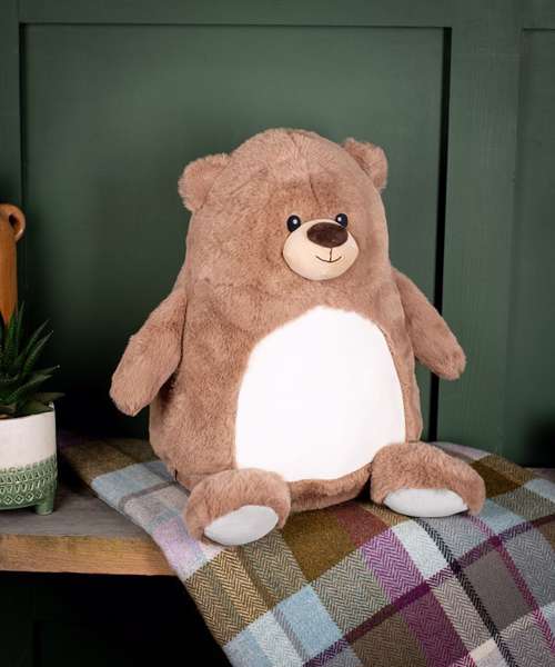 If you go down to the woods today… you might meet this handsome Zippie brown bear with its soft plush fur and cute sewn features. The tummy is easily decorated, with zip access and removable tummy pad providing access for embroidery and printing. Complies with EN071 European Toy Safety regulations. Remove all hang tags and their fasteners before giving these items to a child. Suitable for all ages. Height: 34cm. REACH IS09002.