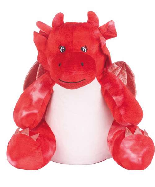 Ignite your imagination with the Zippie red dragon plush toy. With its vibrant crimson tie-dye fur, detailed stitching and shimmering wings and claws, this mythical dragon is as huggable as it is fierce! Perfect for fantasy lovers, collectors and brave little warriors. The tummy is made in a flatter pile for easy embroidery or printing.