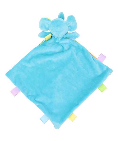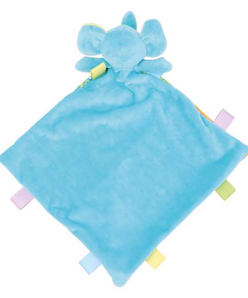 This multi-coloured elephant comforter with internal rattle will be a favourite for any child. It has a bright blanket with patchwork panels and fabric tabs and zip access on the comforter to allow for direct access to print or embroider. Complies with EN71 European Toy Safety regulations. Remove all hang tags and their fasteners before giving these items to a child. Suitable for all ages.