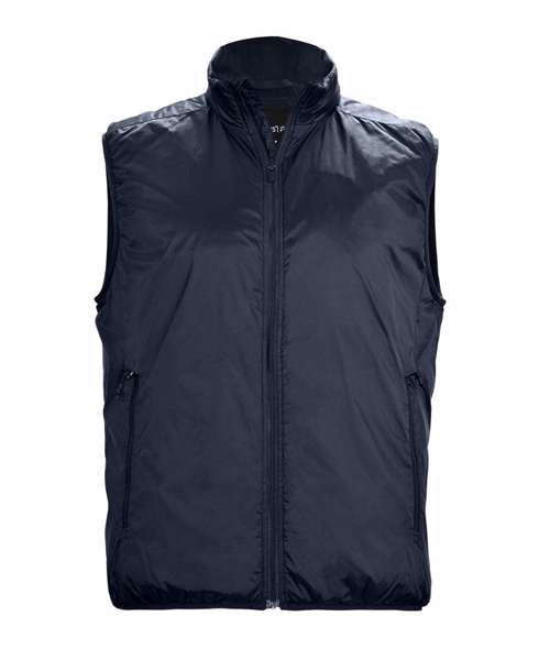 DETAILS: Shell and lining from recycled nylon. Lightweight. Elasticated band finish at hem and armholes. Side pockets with zip. Inner pocket with zip. Water-repellent. Recycled nylon. BIONIC FINISH® ECO – impregnation. Sorona® Aura – Eco-efficient performance fibre.