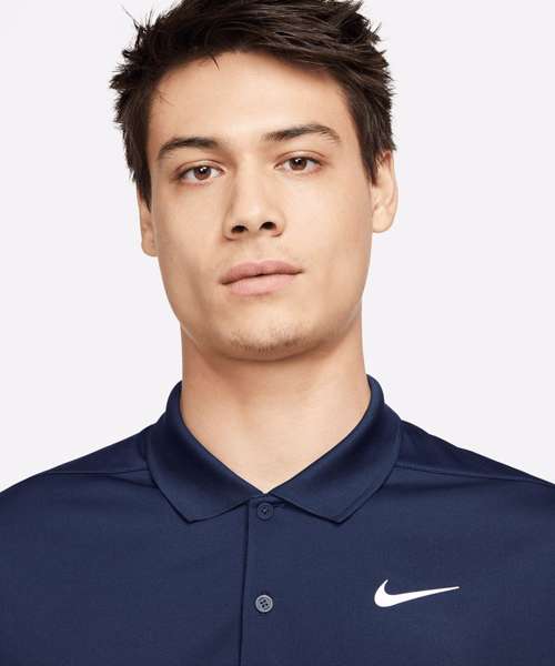 Nike Dri-FIT technology moves sweat away from your skin for quicker evaporation, helping you stay dry and comfortable. Shoulder seams are rolled forward so you can fully power through your swing. Standard fit for a relaxed, easy feel. Two-button placket.