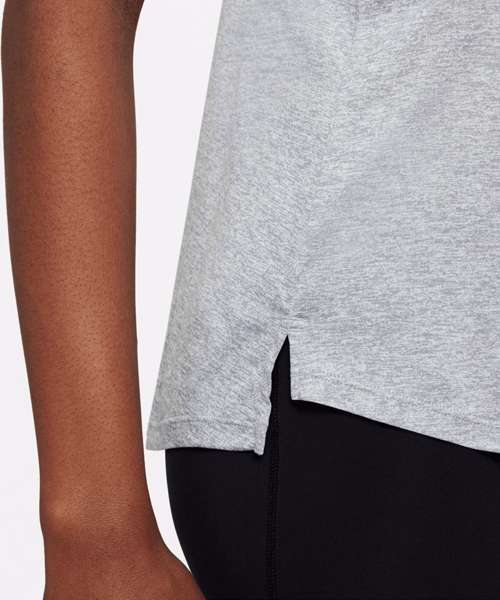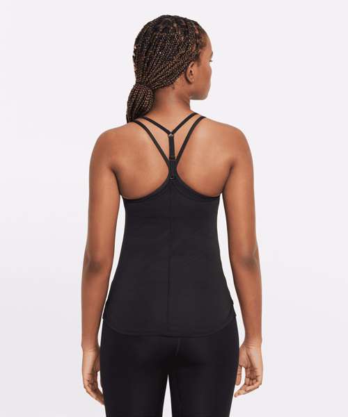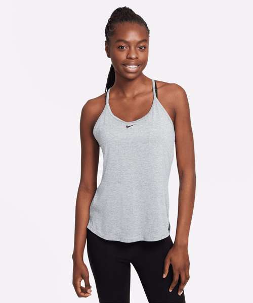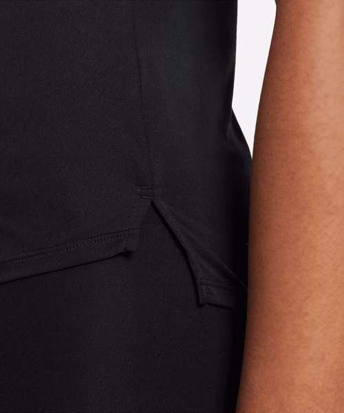 Nike Dri-FIT technology moves sweat away from your body for quicker evaporation, helping you stay dry and cool. Soft, smooth fabric curves down at the back hem for a little more coverage. Small side slits create extra give while you move. A fresh take on a classic Nike training tank, the design highlights your natural shape without feeling restrictive. Strap in back adjusts to help you find the perfect fit.