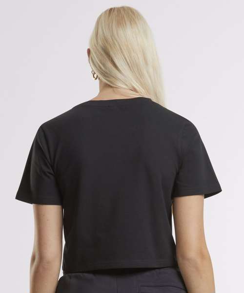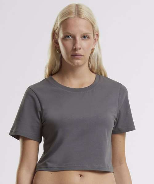 Effortlessly stylish with a loose fit. Modern appeal with a round neckline. Perfectly cropped for a chic look. Simple elegance in a plain pattern. Short sleeves for a casual vibe. 95% Certified organic cotton.