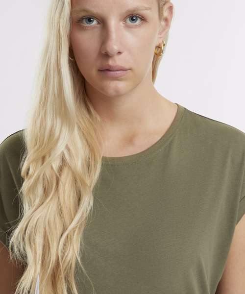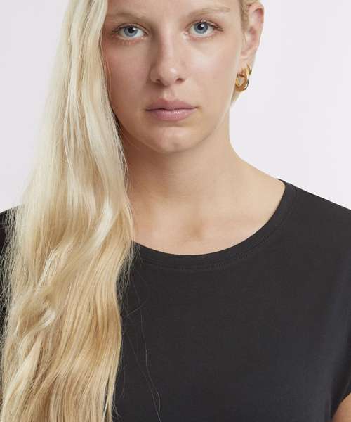 Effortlessly chic with a round neckline. Comfortable loose fit for everyday wear. Classic short sleeves, perfect for layering. Timeless design with a seamless collar. Simple elegance in a plain pattern. 100% Certified organic cotton.